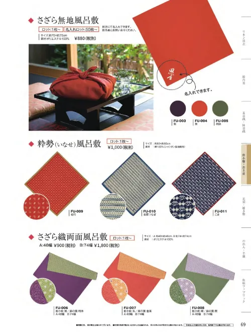 サービスユニフォームCOM さざら無地風呂敷 風香 FU-003 サービスユニフォームの専門店