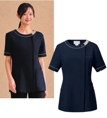 受付や医療現場で活躍するチュニック。ポリエステル100%素材にストレッチ機能を備え、動きやすさと美しいシルエットを両立。独自のカッティングで幅広い年齢 体型にフィットし、快適な着心地と上品な印象を叶えます。