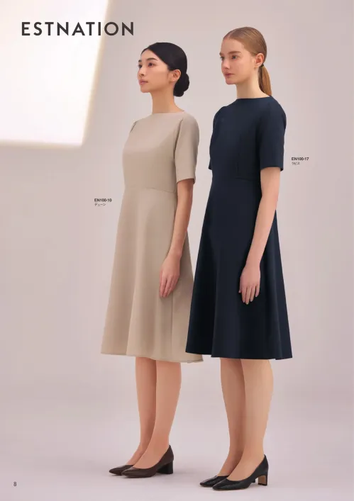 「ESTNATION×FOLK」のコラボレーションシリーズのワンピース。ESリュクスモーション ポリエステル100%素材を使用し、デコルテからバストラインにかけての美しいライン設計で上品な佇まいを実現。動きやすさと着脱のしやすさにも配慮し、着用時の快適さと洗練された印象を両立します。