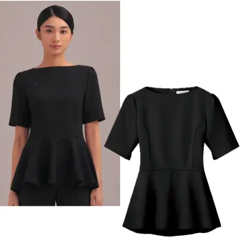 ・ウエストの切り替えから広がるペプラムシルエットで美しさと体型カバーを両立