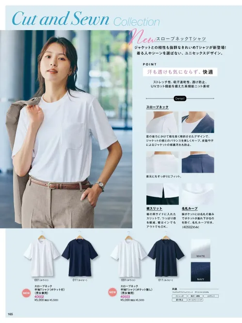 スロープネック 半袖Tシャツ(ポケット付) アイトス (ハイナック)40502-011
