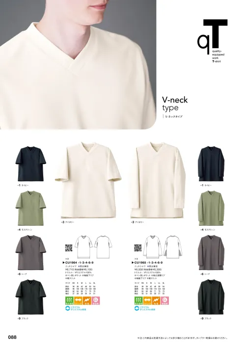 ニットシャツ半袖(Vネックタイプ) セブン(白洋社)CU1964-1のサイズ表