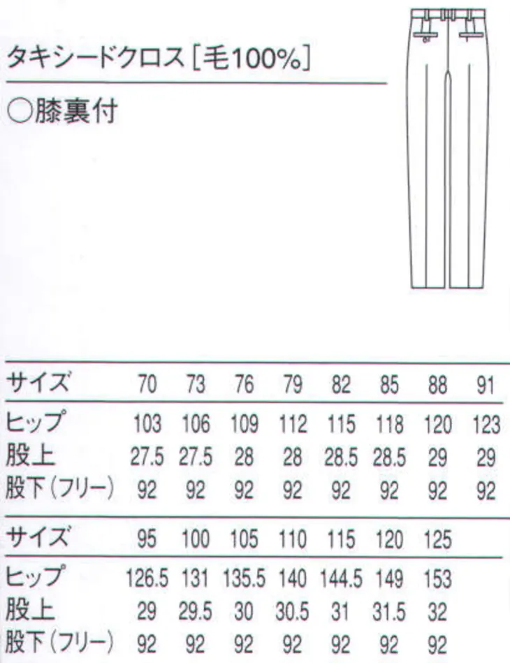 ツータックパンツ セブン(白洋社)HL4253のサイズ表