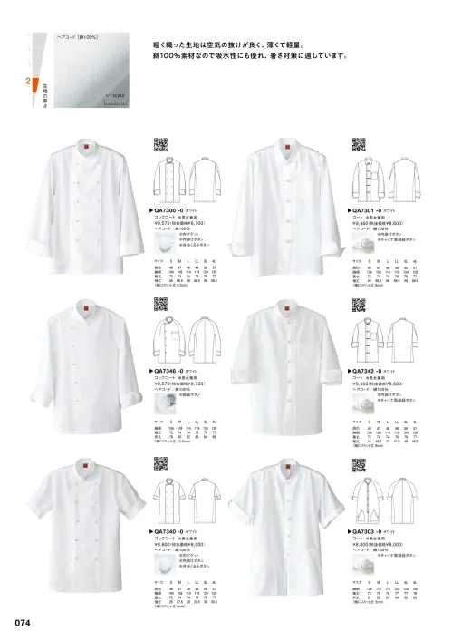 七分袖コート セブン(白洋社)QA7342のサイズ表