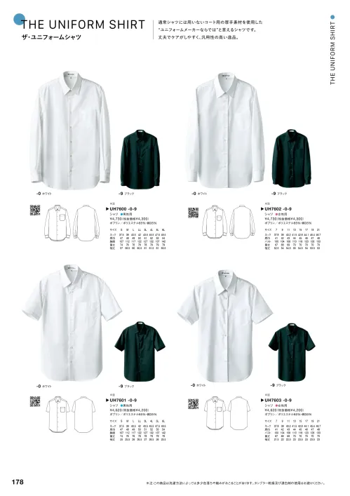 長袖シャツ(女) セブン(白洋社)UH7602のサイズ表