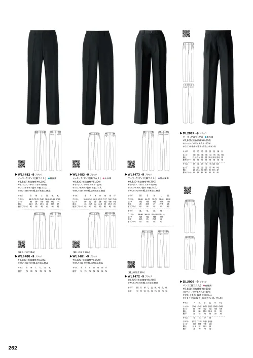 ノータックパンツ(脇ゴム入・裾上げ加工済み) セブン(白洋社)WL1480のサイズ表