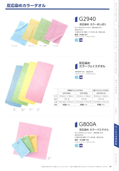 反応染 カラーバスタオル(84枚入り) G800A
