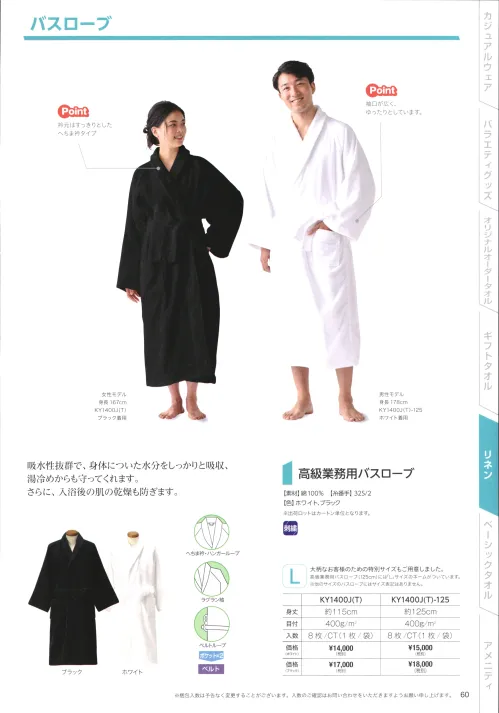 KY1400J-125-BK 高級業務用バスローブ(ブラック/125cm/8枚入)
