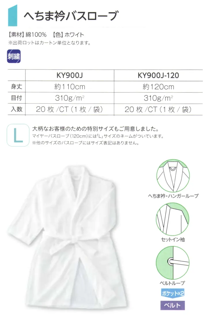 KY900J-120 へちま衿バスローブ(120cm/20枚入)
