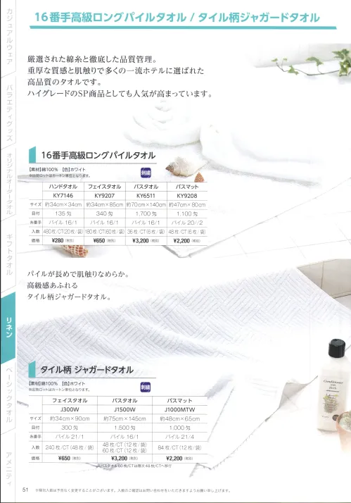 厳選された綿糸と徹底した品質管理。重厚な質感と肌触りで多くの一流ホテルに選ばれた高品質のタオルです。ハイグレードのSP商品としても人気が高まっています。