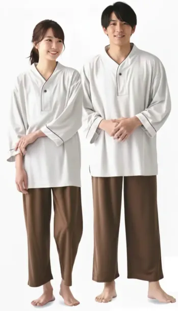 ゆったりサイズで楽な着心地が自慢のリラックスウェアです。かぶりタイプでお着替え簡単!リゾートホテルやスパの館内着としておすすめです。