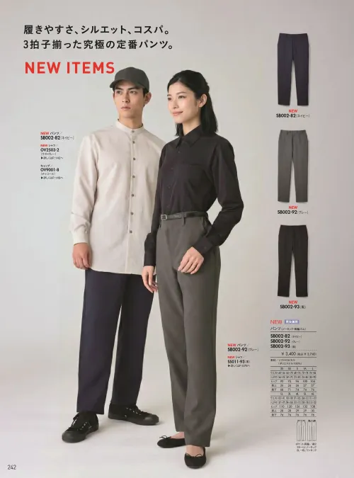 履きやすさ、美しいシルエット、日常使いしやすいコストパフォーマンスの三拍子そろった定番パンツです。適度なゆとりを持たせつつ、すっきり見えるシルエットで、男女問わず自然に着こなせます。