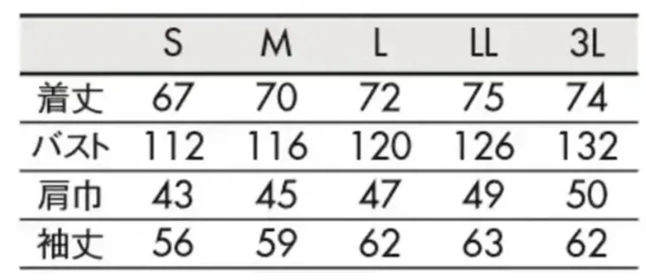 ブルゾン(長袖) 住商モンブランSJ001-92のサイズ表