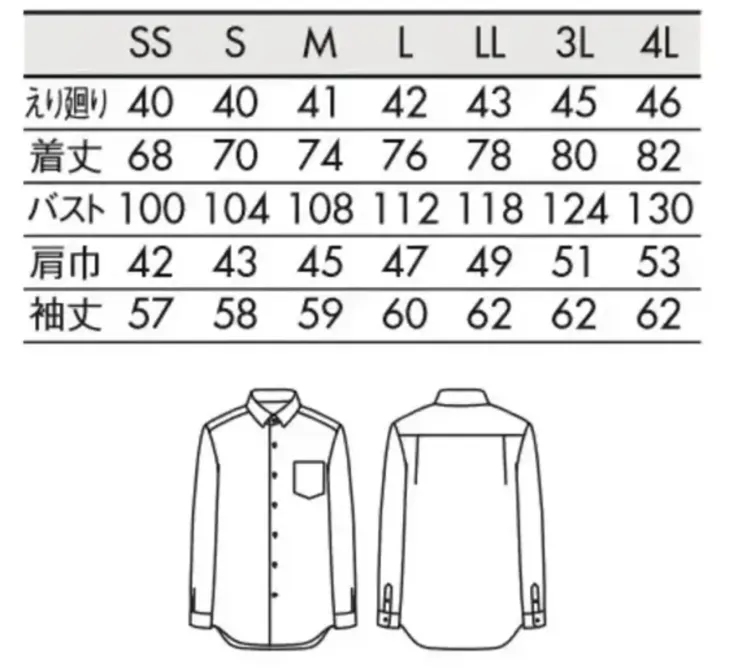シャツ(長袖) 住商モンブランSS011-22のサイズ表