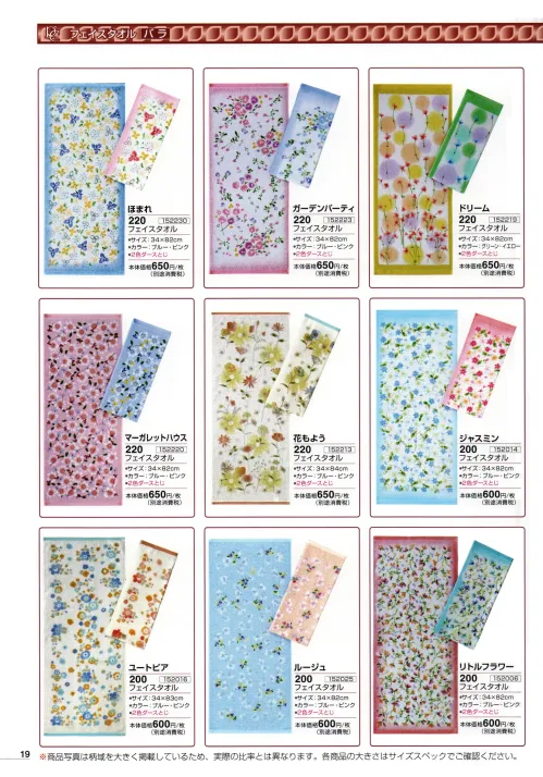 フェイスタオル ユートピア(12枚入) 神藤タオル152016のサイズ表