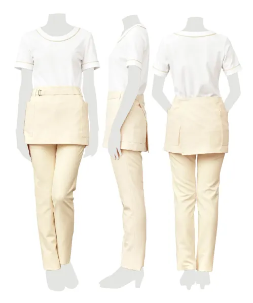 おしりをすっぽり包みます!おしりをスッポリ包むタイプなので、バックスタイルも素敵。ウエストベルトはバックルに通すので作業の邪魔になりません。高機能素材を使用しているため、作業性も抜群。