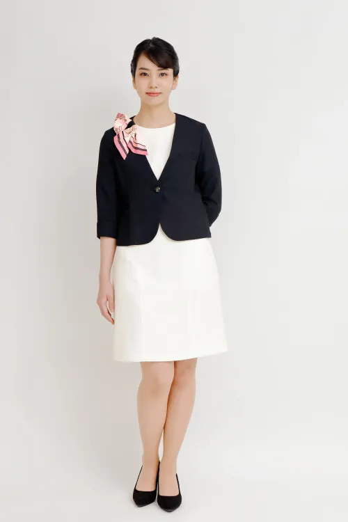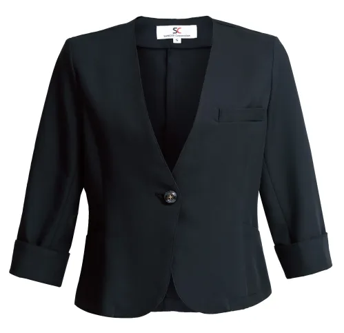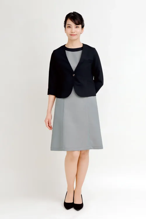 すっきりきれいに着こなせるV開きの七分袖ジャケット。ワンピースにサッとはおれば、おもてなしスタイルの完成。シンプルなデザインなので様々なアイテムとコーディネート可能なマルチアイテムです。