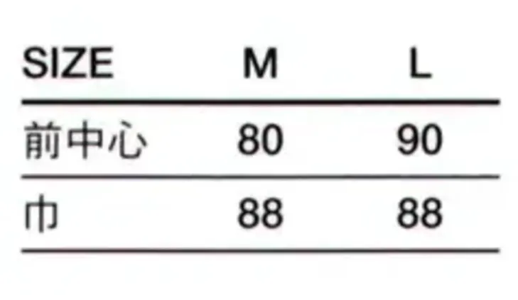 腰下ソムリエエプロン(ホワイト) 傳馬屋1070-10のサイズ表