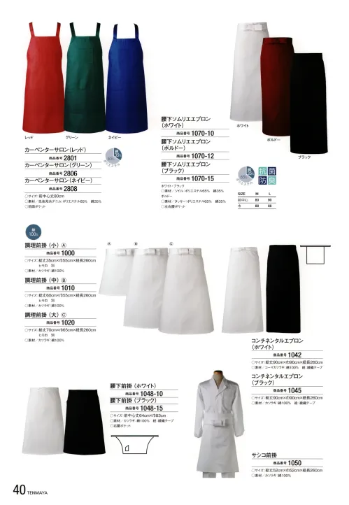 腰下ソムリエエプロン(ブラック) 傳馬屋1070-15のサイズ表