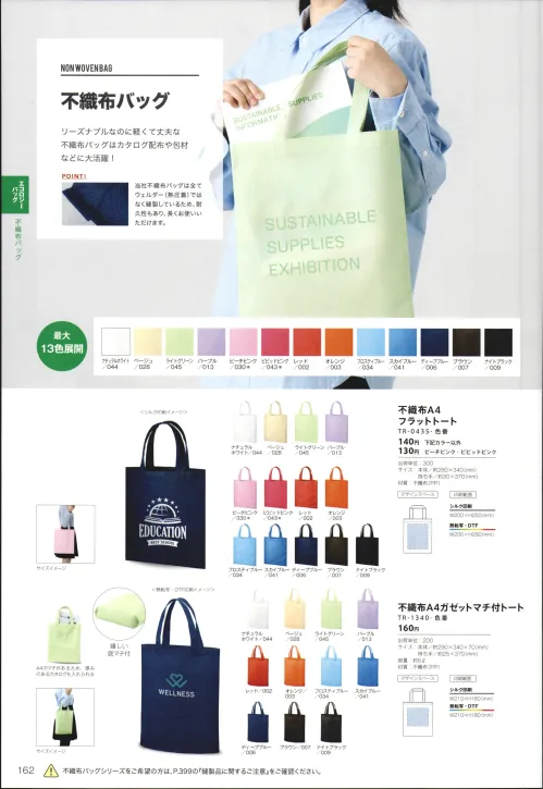 リーズナブルなのに軽くて丈夫な不織布バッグはカタログ配布や包材などに大活躍!