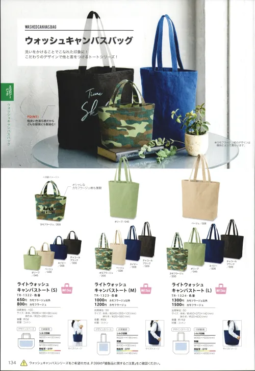 ライトウォッシュ キャンバストート(M) TR-1323-028