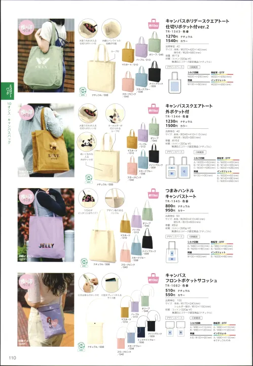 キャンバス スクエアトート 外ポケット付 TR-1344-040