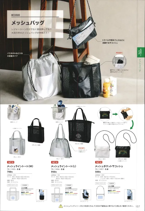 夏のアクティビティにぴったりの通気性抜群のメッシュバッグ