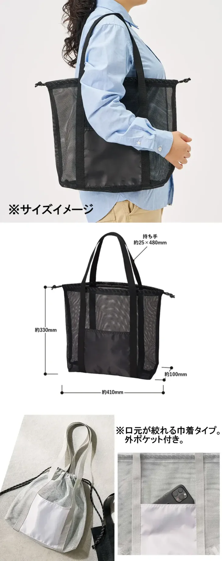 夏のアクティビティにぴったりの通気性抜群のメッシュバッグ