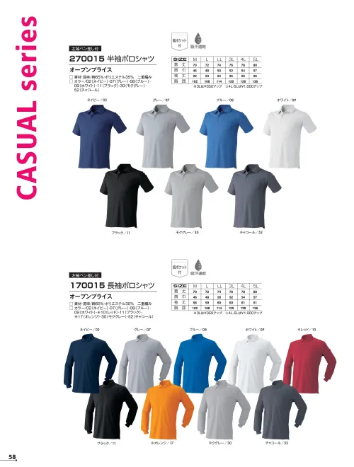 半袖ポロシャツ(270015) アタックベース2700-15のサイズ表