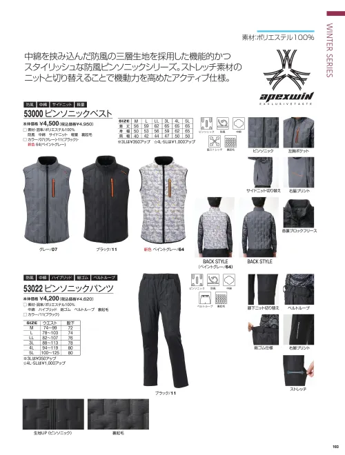 ピンソニックZIPアップ アタックベース53015のサイズ表