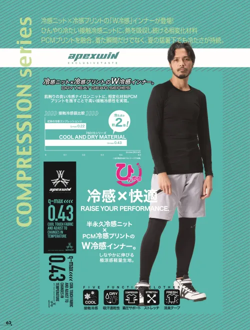 ■素材特長接触冷感(Q-max0.43)|PCM冷感プリント|ストレッチ|吸汗速乾