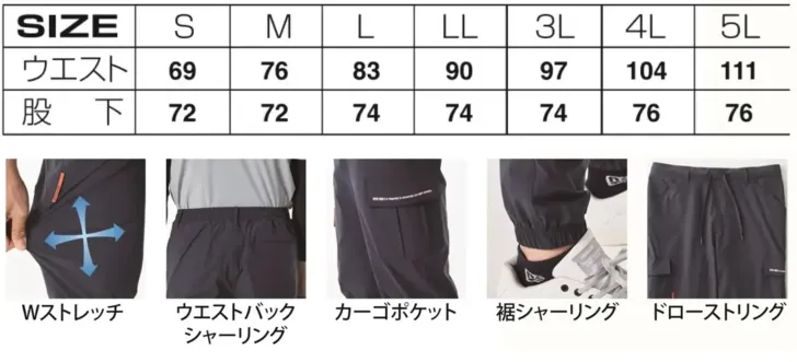 ストレッチジョガーパンツ アタックベース90171のサイズ表