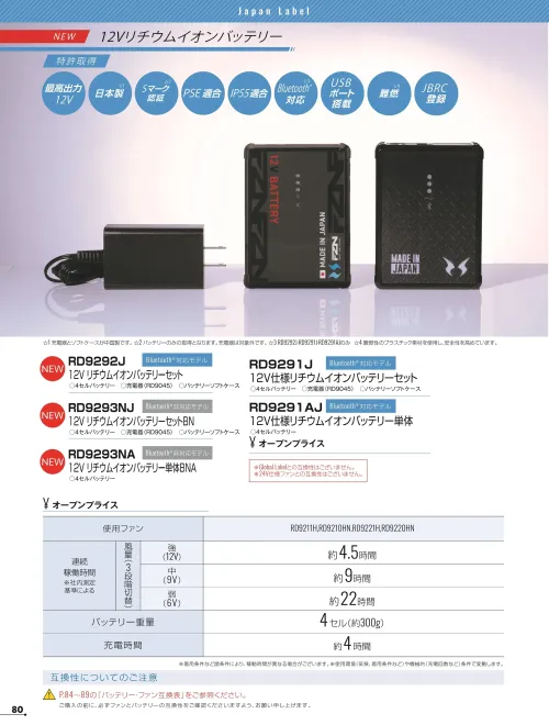 ※本製品はJapan Labelシリーズ専用の12V仕様バッテリーです。
