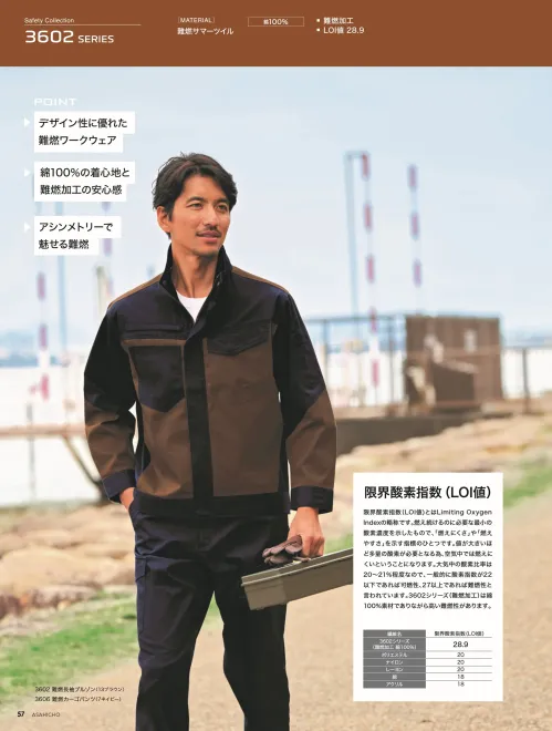 綿100%の難燃サマーツイルを使用した、デザイン性だけじゃない難燃カーゴパンツです。限界酸素指数LOI値28.9の高い難燃性能を備え、火気を扱う現場でも安心して着用可能。綿100%ならではのやわらかな着心地と、作業性を考慮した機能ポケットを搭載し、安全性と快適性を両立した難燃ワークウェアです。