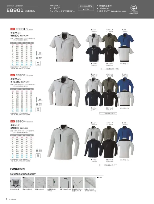 半袖ブルゾン 旭蝶繊維E8901のサイズ表