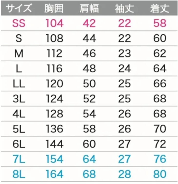 ・サイズ:SS~8L