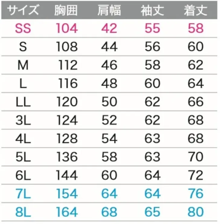 ・サイズ:SS~8L