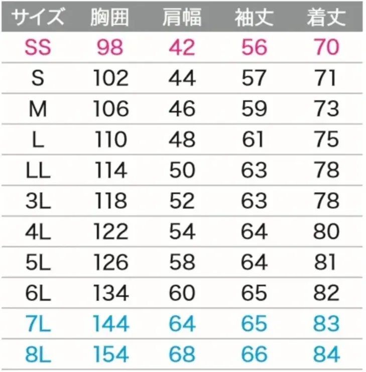 ・サイズ:SS~8L