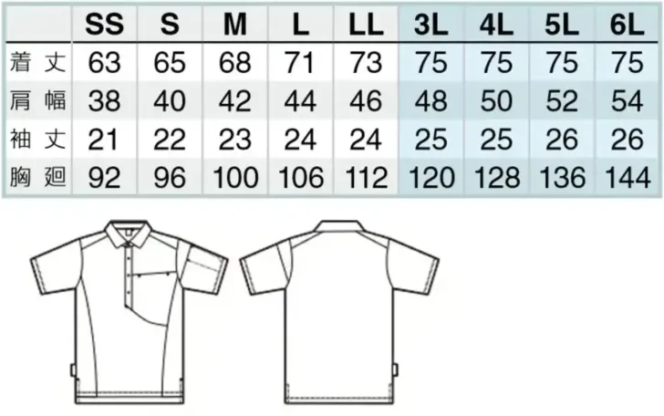 半袖ポロシャツ(男女兼用) アイトスAZ-50018のサイズ表