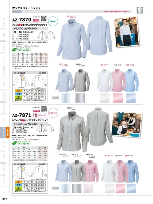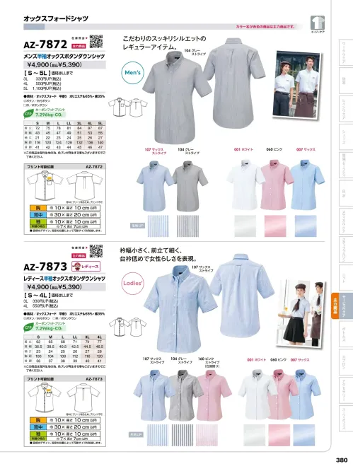 メンズ半袖オックスボタンダウンシャツ アイトスAZ-7872のサイズ表
