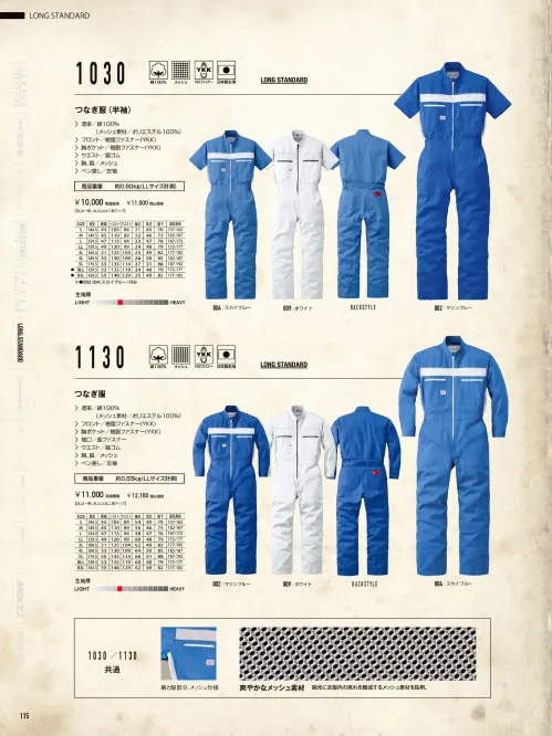 半袖ツヅキ服 スカイブルー(1-1030) 山田辰1030-2のサイズ表