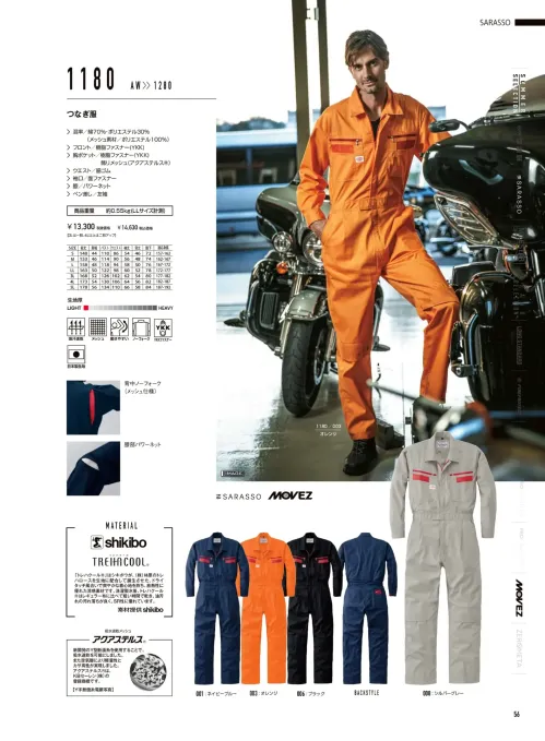 ツヅキ服(1-1180) 山田辰1180のサイズ表