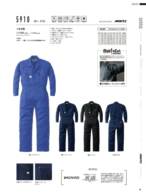 ツヅキ服(1-5910) 山田辰5910のサイズ表