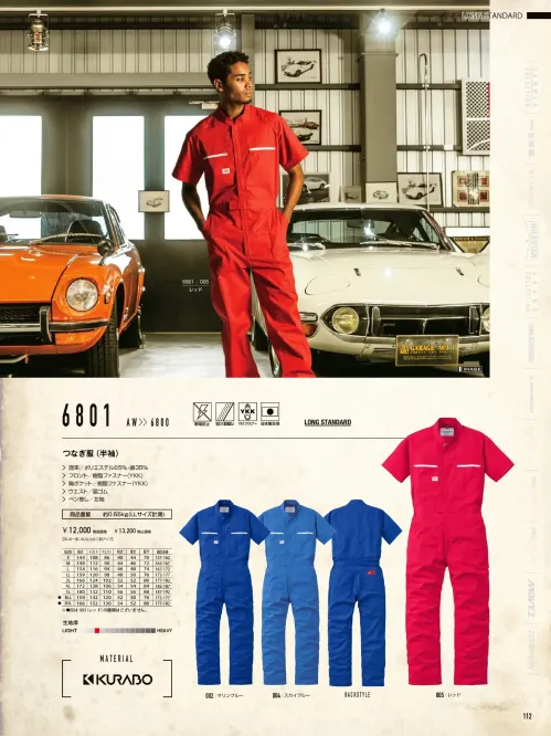 半袖ツヅキ服(1-6801) 山田辰6801-1のサイズ表