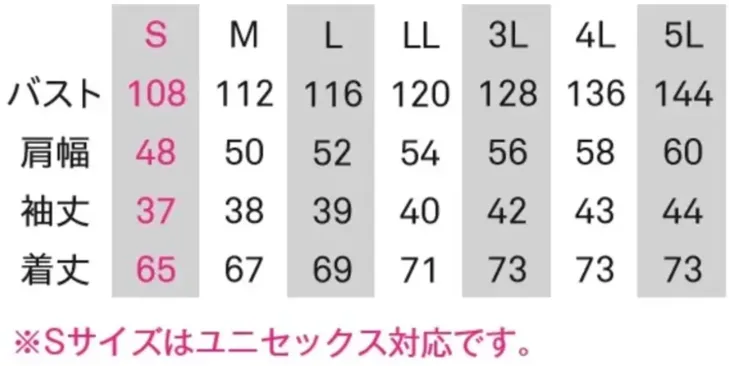 ・サイズ:S~5L(Sサイズはユニセックス対応)