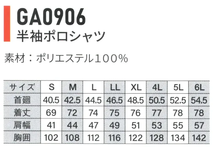 半袖ポロシャツ サックス ベストGA0906のサイズ表