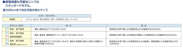 ・使用区分:飛来・落下物用 電気用(使用電圧7000V以下) 墜落時保護用
