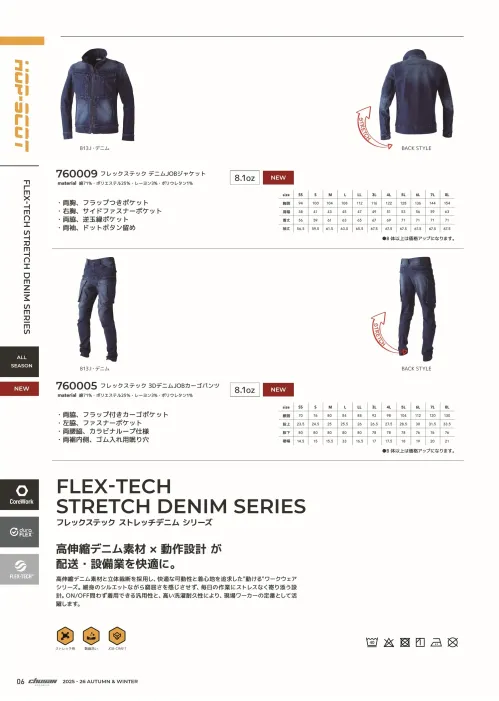 760005 フレックステック 3DデニムJOBカーゴパンツ