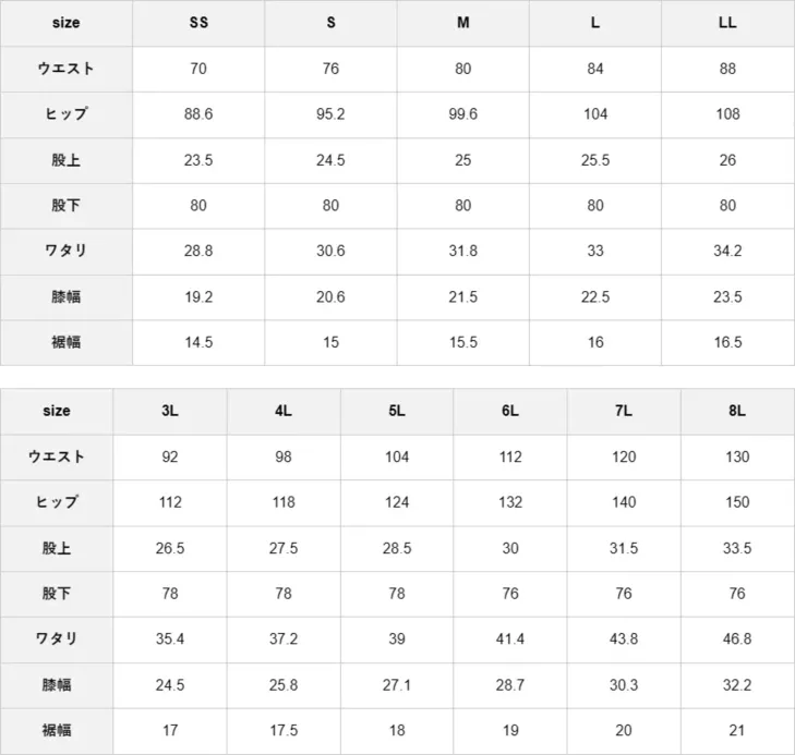 フレックステック 3DデニムJOBカーゴパンツ CUC760005のサイズ表