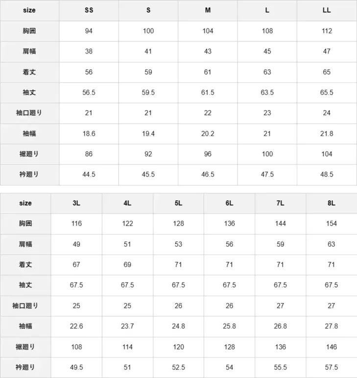 フレックステック 3DデニムJOBジャケット CUC760009のサイズ表